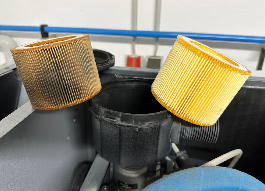 Ein in ölgeschmierten Schraubenkompressoren eingebauter Separator sieht äußerlich dem Ölfilter sehr ähnlich ist oft in den Abmessungen nur etwas größer.
